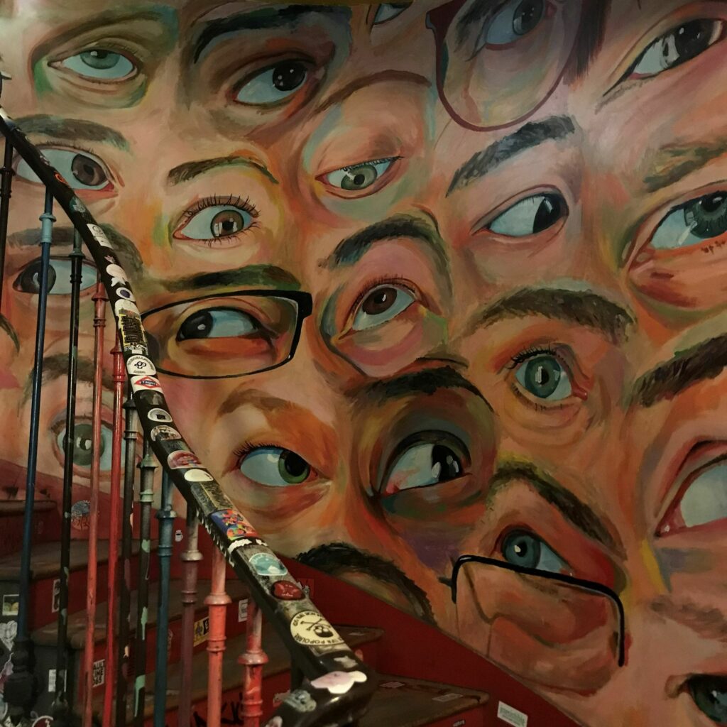 Sur la couverture de la chronique, la fameuse photo des yeux dans la cage d’escalier(œuvre d’Eduardo Fonseca.