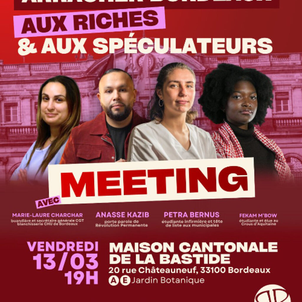 La liste révolution permanente : « Arracher Bordeaux aux riches et aux speculateurs » menée par Petra Bernus a été invitée sur notre antenne. Pour répondre à nos questions, ce sont les deux co-listiers : Antonin Cheron et Fekam M’Bow qui sont venus présenter leurs idées et programme.