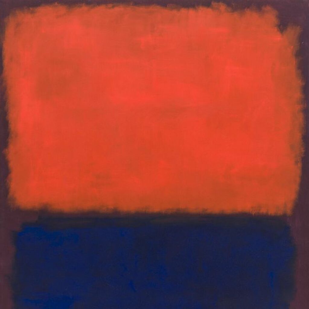 Mark Rothko c’est des tableaux qui paraissent si simples au premier regard mais qui n’en sont pas moins envoûtants. Après plusieurs périodes de tâtonnement artistique, Rothko trouve sa patte artistique automatiquement identifiable : deux ou trois formes rectangulaires et colorées qui se superposent jouant ainsi d’une infinité de tons et de valeurs, créant alors une vibration intérieure.