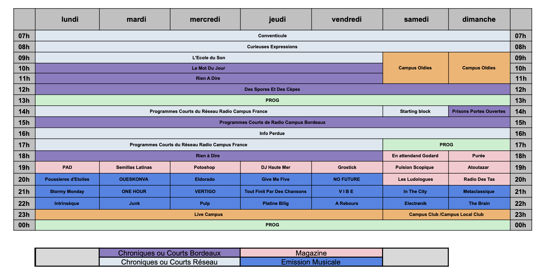 Grille des programmes – Été 2025